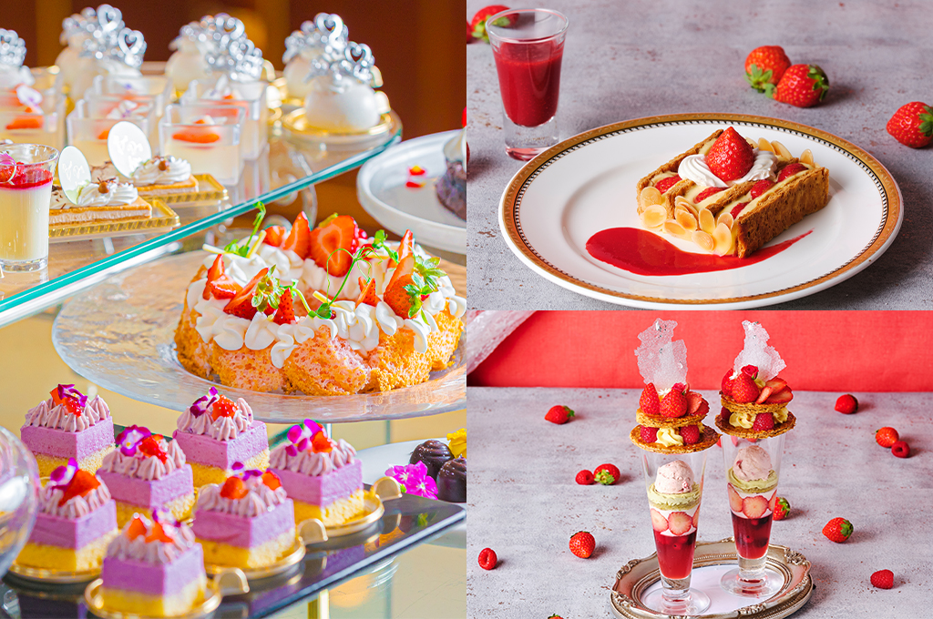 冬の味覚の代表、真っ赤で甘いいちごをふんだんに使用したスイーツは「8種のスイーツが選べるデザートワゴン」・「さくさくパイ生地の苺のミルフィーユ」・「美しい飴細工を飾ったいちごのご褒美パフェ」から選択可能!四季庭自慢のランチがセットになった当プランは、お一人様でも、ご家族・ご友人とのお食事でも、どんなシーンにもぴったりです。 見た目も華やかなスイーツで美味しい時間をお過ごしください。皆様のご来店を心よりお待ちしております。