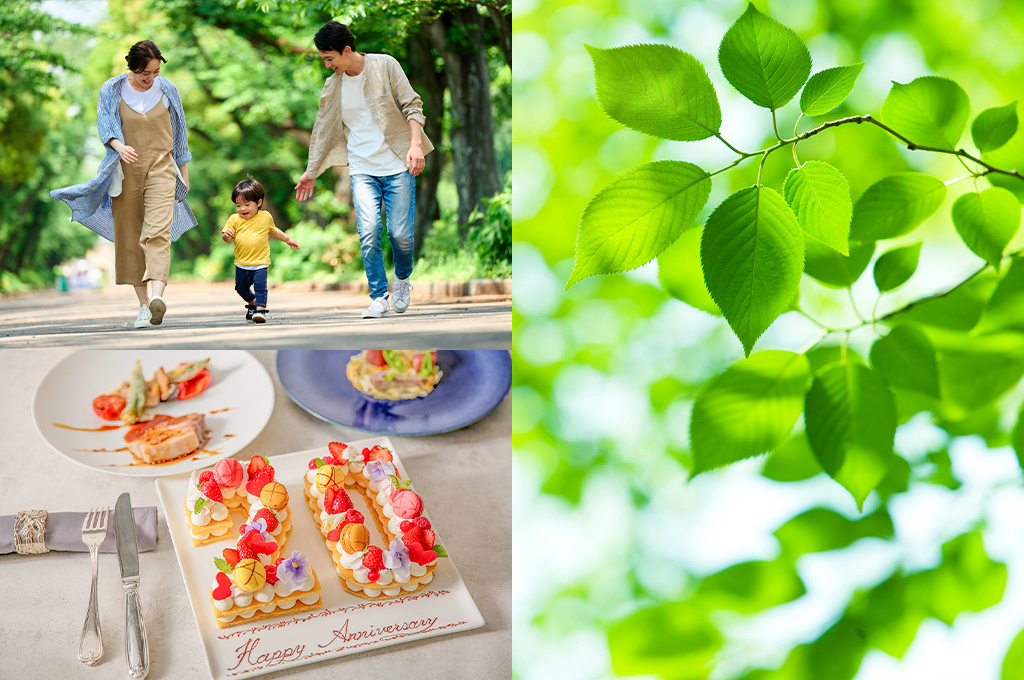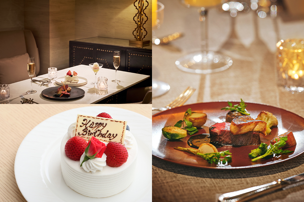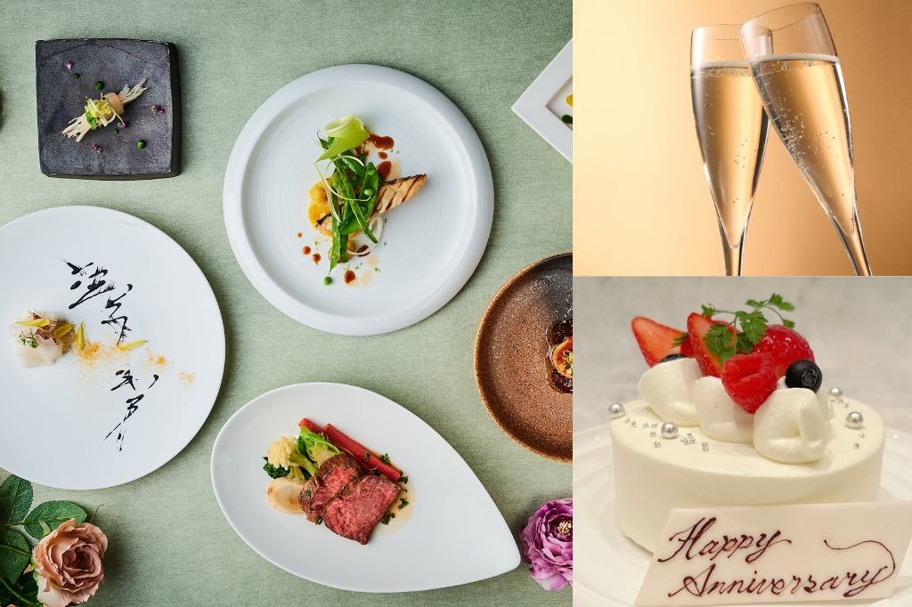 誕生日、結婚記念日、お付き合い記念日、プロポーズ… どんな記念日も、かけがえのない想い出になるように。そんな特別な日を演出する『ケーキ付き記念日プラン』をご用意しました。おふたりの時間をゆったりと過ごせる空間と、心に残るおもてなし。そして、専属パティシエによる「オリジナルホールケーキ」や「ナンバーケーキ」、サプライズにぴったりの「ギミックケーキ」が、お祝いのシーンを華やかに彩ります。
