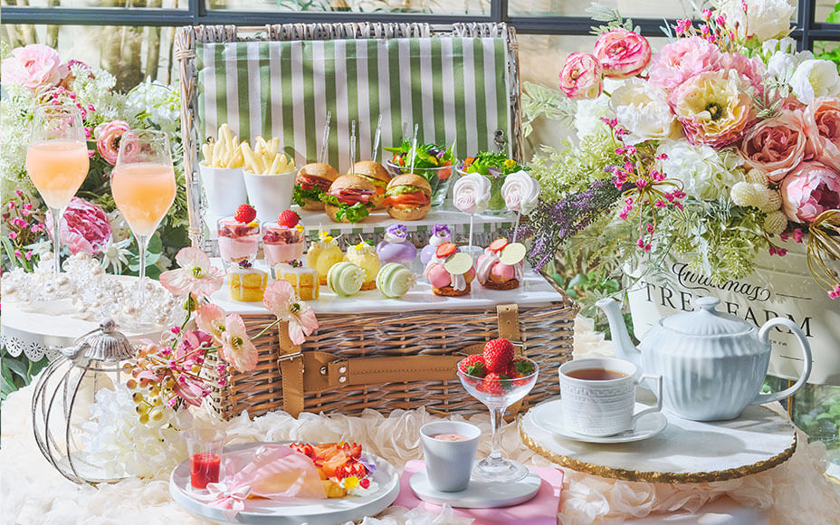 バスケットにフードを詰め込んだ春のピクニック気分を楽しめるアフタヌーンティーも同時販売