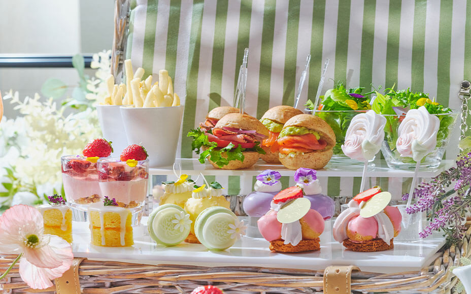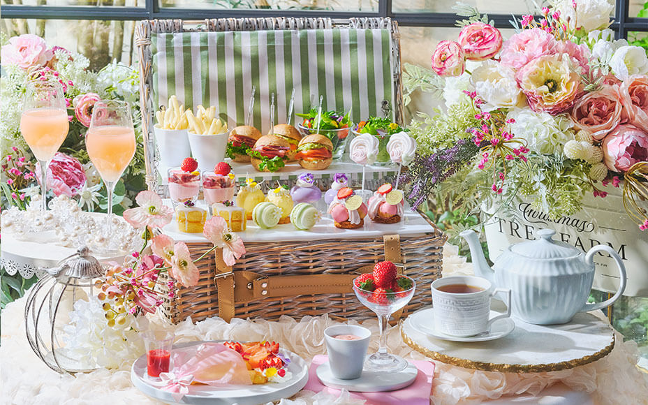 バスケットにフードを詰め込んだ春のピクニック気分を楽しめるアフタヌーンティーも同時販売