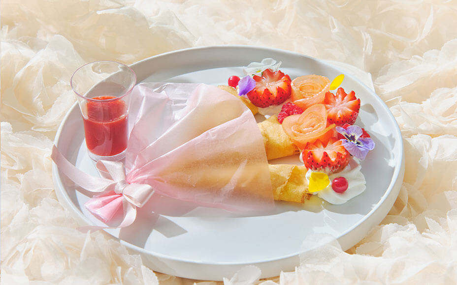 花束のブーケをイメージしたクレープとフレッシュいちごを楽しめる2つのスペシャルデザートも魅力!