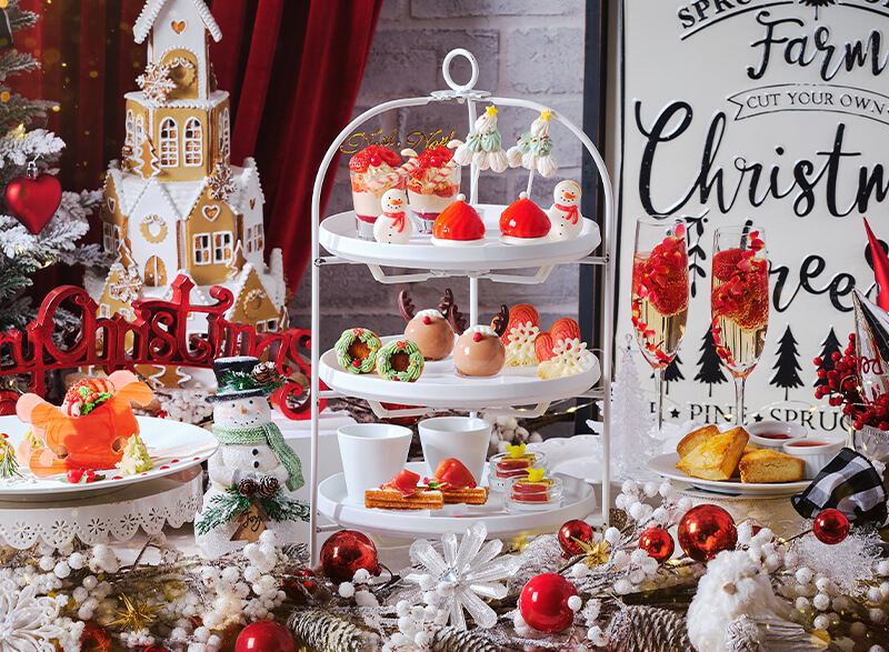 トナカイに見立てた可愛らしいムースをはじめ、クリスマスツリーをイメージしたメレンゲポップやサンタの帽子型が可愛らしいいちごのムースなど、遊び心のあるクリスマスモチーフのスイーツをラインナップ。