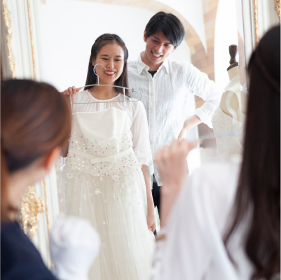 - ドレス試着フェアでは最新のドレス試着&撮影