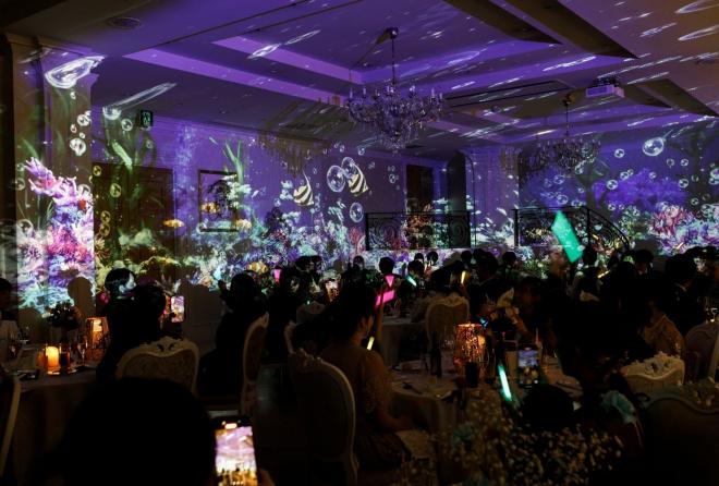 再入場は大好きな海のプリンセスをイメージしてプロジェクションマッピングで海の世界を表現。