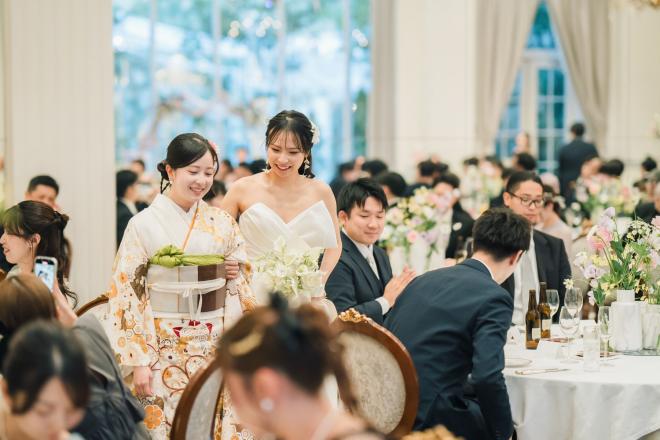 STORY 結婚式のストーリー これまで思い描いてきた「やりたいこと」を、ひとつも諦めない。 ゲストへの感謝も、ふたりらしさも、大切な時間もすべて詰め込んだ一日。 この結婚式は、ふたりの想いがそのまま形になり、 「こうしたかった」がすべて叶う、かけがえのない記念日です。