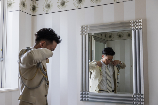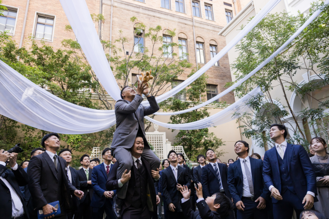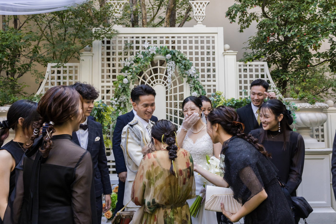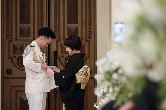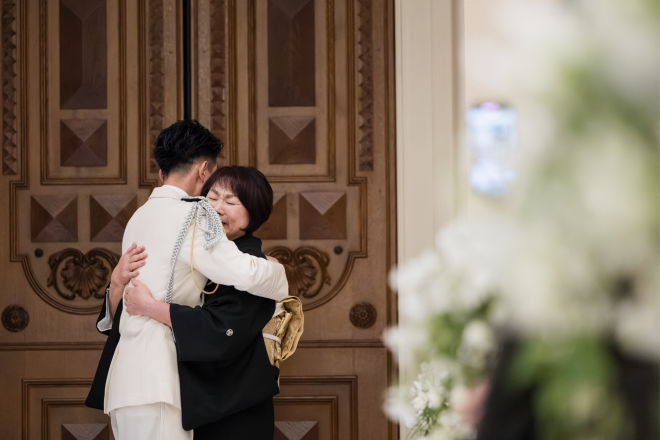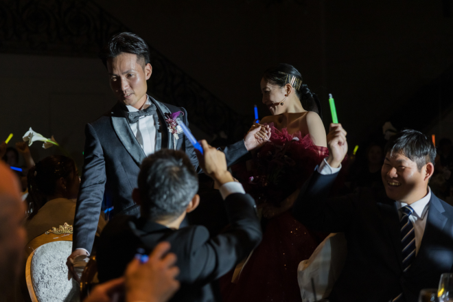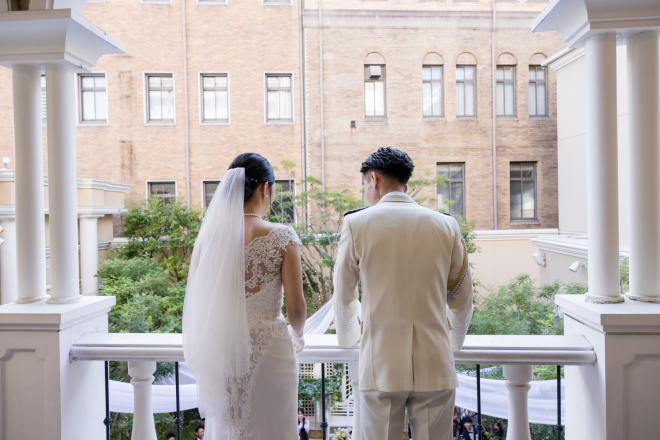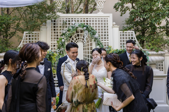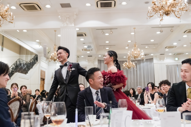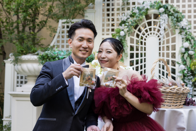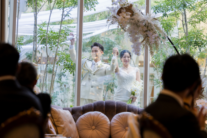 大好きなワンちゃんと一緒に迎える特別な一日 ステンドグラスが輝くチャペルでのセレモニーは、 おふたりらしさがあふれるあたたかな時間に。 大切な家族と過ごす、幸せいっぱいのウェディングです