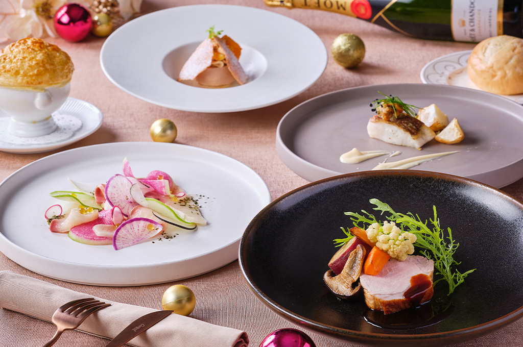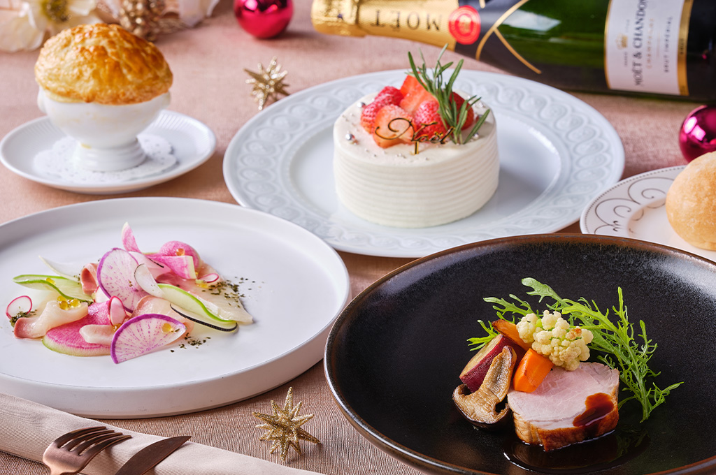今年のクリスマスは、贅沢なランチで特別なひとときを過ごしませんか。温かいパイ包みのスープをはじめ、クリスマス気分を盛り上げるケーキ付きのアフタヌーンティーまで、華やかなクリスマスランチプランをご用意しました。また、オマール海老やロッシーニの豪華食材を使用したプランも用意しております。個室もご用意していますので、クリスマス女子会や記念日、お祝いの会食にも最適です。大切な人と、心に残るランチタイムをお過ごしください。