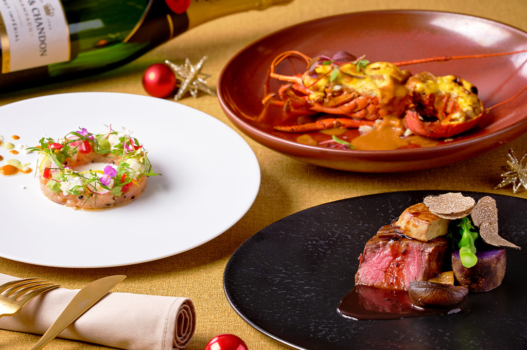 今年のクリスマスは、世界三大珍味(キャビア、フォアグラ、トリュフ)や、豪華なオマール海老・国産伊勢海老をふんだんに使用した、贅沢なクリスマスディナーコースをご用意しました。大切な方との思い出を華やかに彩ります。