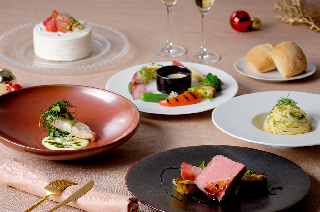 今年のクリスマスは、贅沢なランチで特別なひとときを過ごしませんか。クリスマスリースに見立てたドルチェをはじめ、クリスマス気分を盛り上げるケーキ付きのアフタヌーンティーまで、華やかなクリスマスランチプランをご用意しました。個室もご用意していますので、クリスマス女子会や記念日、お祝いの会食にも最適です。大切な人と、心に残るランチタイムをお過ごしください。