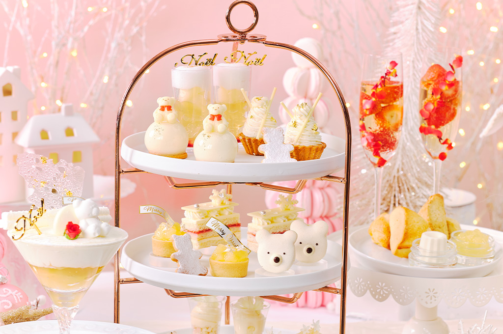 可愛らしい白くまや降り積もる雪、煌めくクリスマスツリーなど、ホリデーシーズンを盛り上げるスイーツが大集合。 白くまモチーフのマカロンを始め、クリスマスツリーに見立てたマカロンや食べるのがもったいないくらいキュートなくま型クッキーなど7種をご用意。 スペシャルデザートにはテーマを象徴する、白い雪の世界を表現したホワイトクリスマスのヨーグルトパフェをご用意。 老舗紅茶ブランド「マリアージュ フレール」が飲み放題のティーセレクションプラン、お食事にもぴったりなランチセットプランと用途に合わせてお選びいただけます。さらに、クリスマスプレゼントにぴったりなオリジナルテディベアもオプションにて販売いたします。可愛らしいホワイトクリスマスに包まれた、ホリデーシーズンのティータイムをお楽しみください。