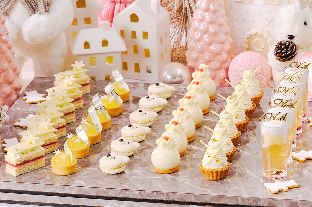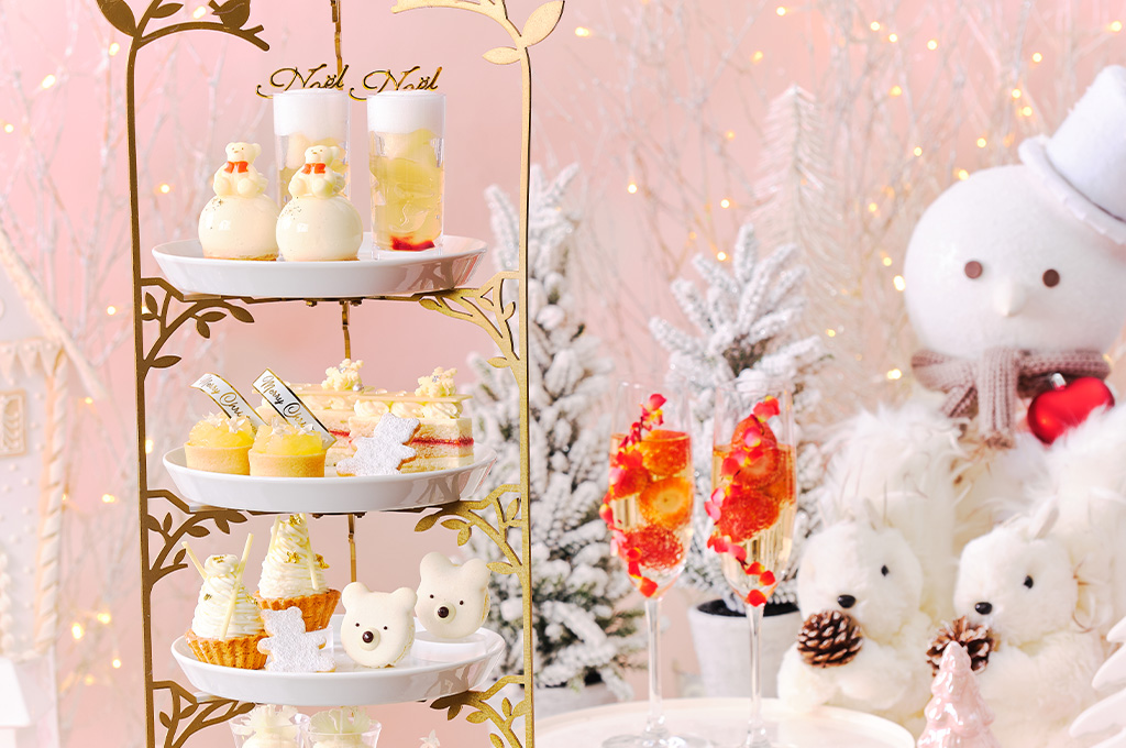 可愛らしい白くまや降り積もる雪、煌めくクリスマスツリーなど、ホリデーシーズンを盛り上げるスイーツが大集合。 白くまモチーフのマカロンを始め、クリスマスツリーに見立てたマカロンや食べるのがもったいないくらいキュートなくま型クッキーなど7種をご用意。 スペシャルデザートにはテーマを象徴する、白い雪の世界を表現したホワイトクリスマスのヨーグルトパフェをご用意。 老舗紅茶ブランド「マリアージュ フレール」が飲み放題のティーセレクションプラン、お食事にもぴったりなランチセットプランと用途に合わせてお選びいただけます。さらに、クリスマスプレゼントにぴったりなオリジナルテディベアもオプションにて販売いたします。可愛らしいホワイトクリスマスに包まれた、ホリデーシーズンのティータイムをお楽しみください。