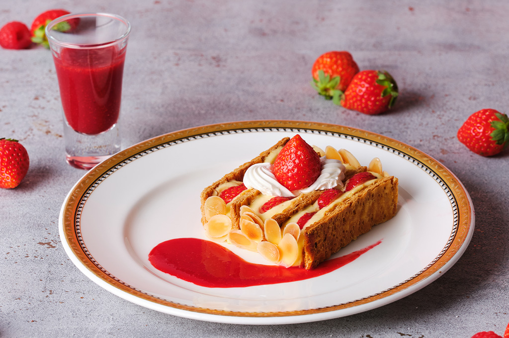旬のいちごを贅沢に使用した華やかでキュートなアフタヌーンティーをご提供いたします。サクサクのクランブルとフレッシュないちご、さわやかなジュレが楽しめるいちごのパルフェをはじめ、フレッシュいちごをサンドした見た目が可愛らしいマカロンなどを存分に楽しめる一品です。パティシエこだわりのスイーツ7種に加え、3種のセイボリーもご堪能いただけます。
