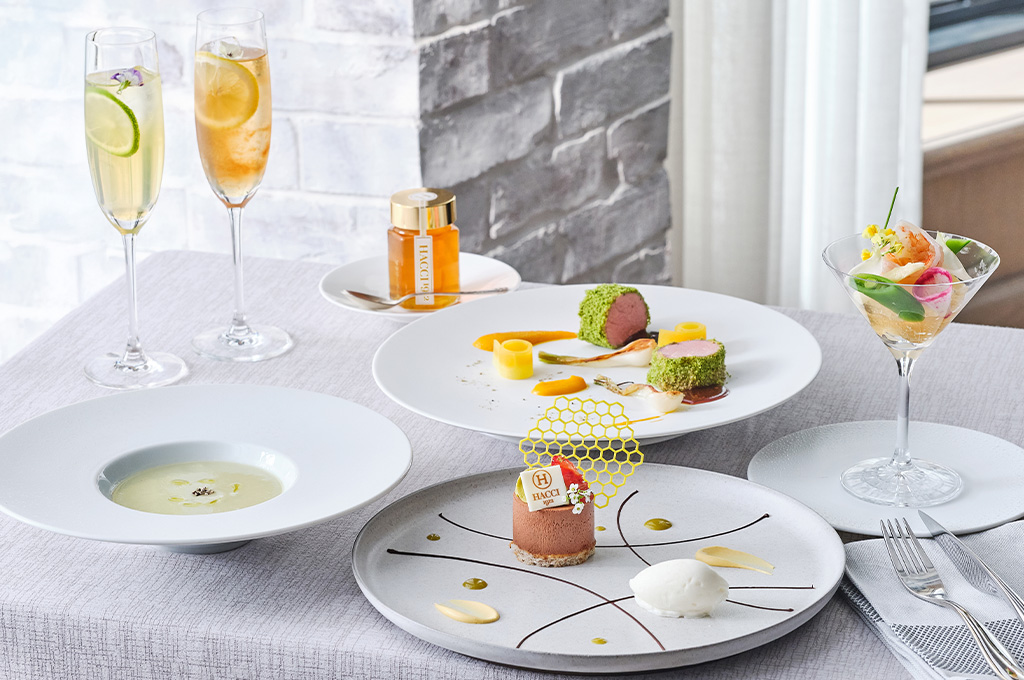 希少な「アカシア」や「フラワーブーケ」のはちみつを贅沢に使用し、旬の春野菜やピスタチオを使用したオープンサンドやデザートクロワッサン、はちみつと相性抜群のコースデザートを含む全5品の逸品をご用意いたしました。
