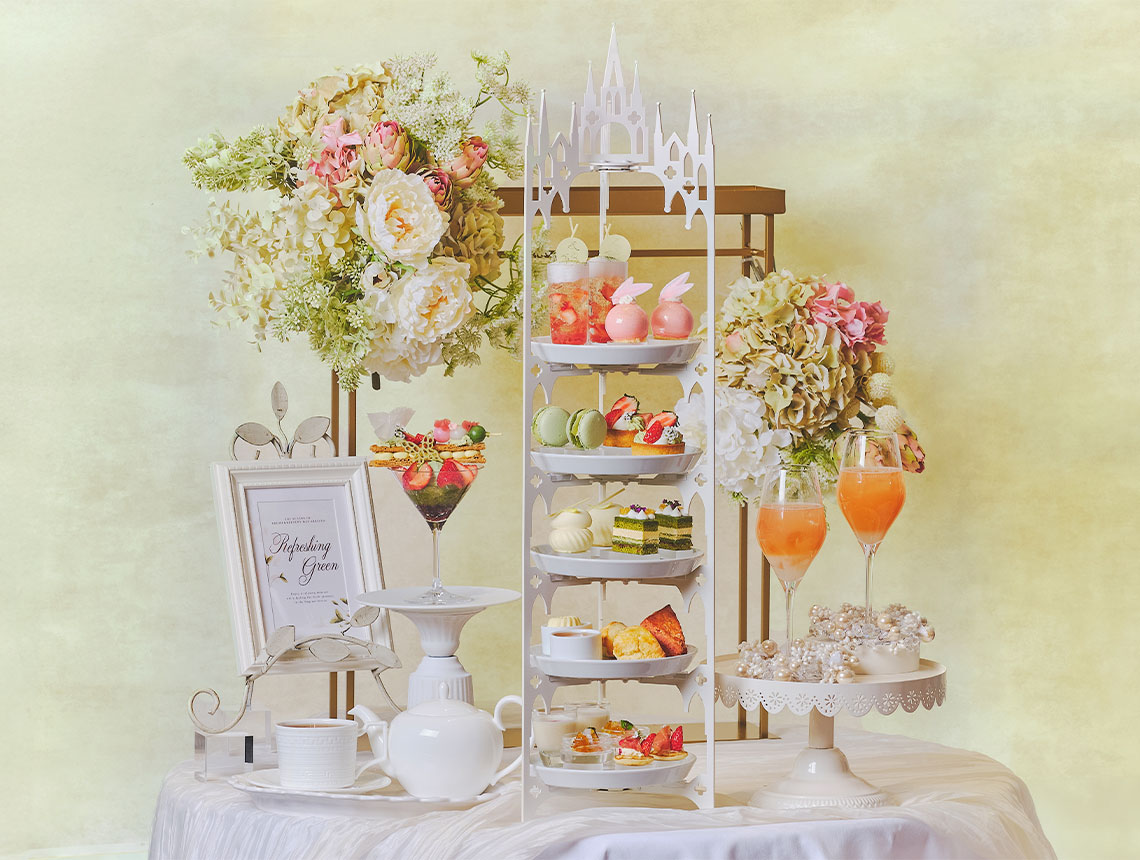 いちごと抹茶の甘美なマリアージュに心躍る『初夏のいちごと抹茶アフタヌーンティー』をご用意いたしました。 スイーツは、いちごと抹茶が香るヴェリーヌや、抹茶クリームとフレッシュいちごのタルトなど、パティシエ渾身の6種をご提供。抹茶のガナッシュとミルクチョコレートの層が美しいオペラなど、視覚でも楽しめる逸品が並びます。さらに、三色団子を大胆に飾った「ミルフィーユ仕立てのスペシャルパフェ」が、テーブルを華やかに彩ります。初夏の訪れを華やかに満喫する、至福のティータイム。大切な方との語らいや、自分へのご褒美に、非日常のひとときをお届けします。
