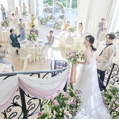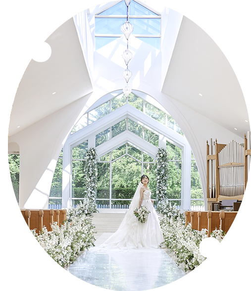 白亜の独立型大聖堂で当日さながらの挙式体験♪パイプオルガンの優しい音色にはきっと感動するはず!大階段でフラワーシャワー体験も!!