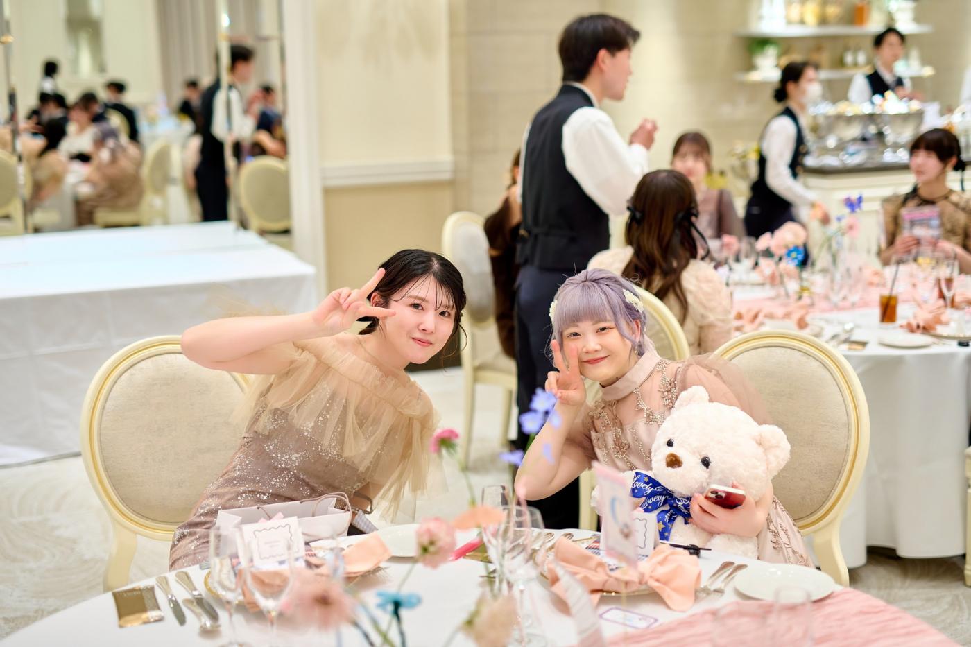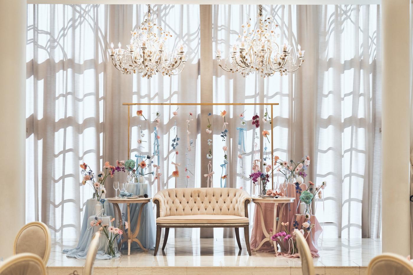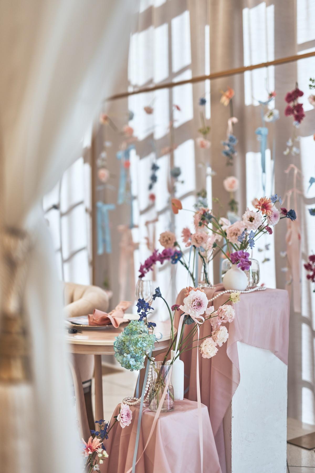 完全オリジナルのコーディネート! 会場内はピンクとブルーで統一感溢れて 沢山のリボンが可愛らしさを演出♪