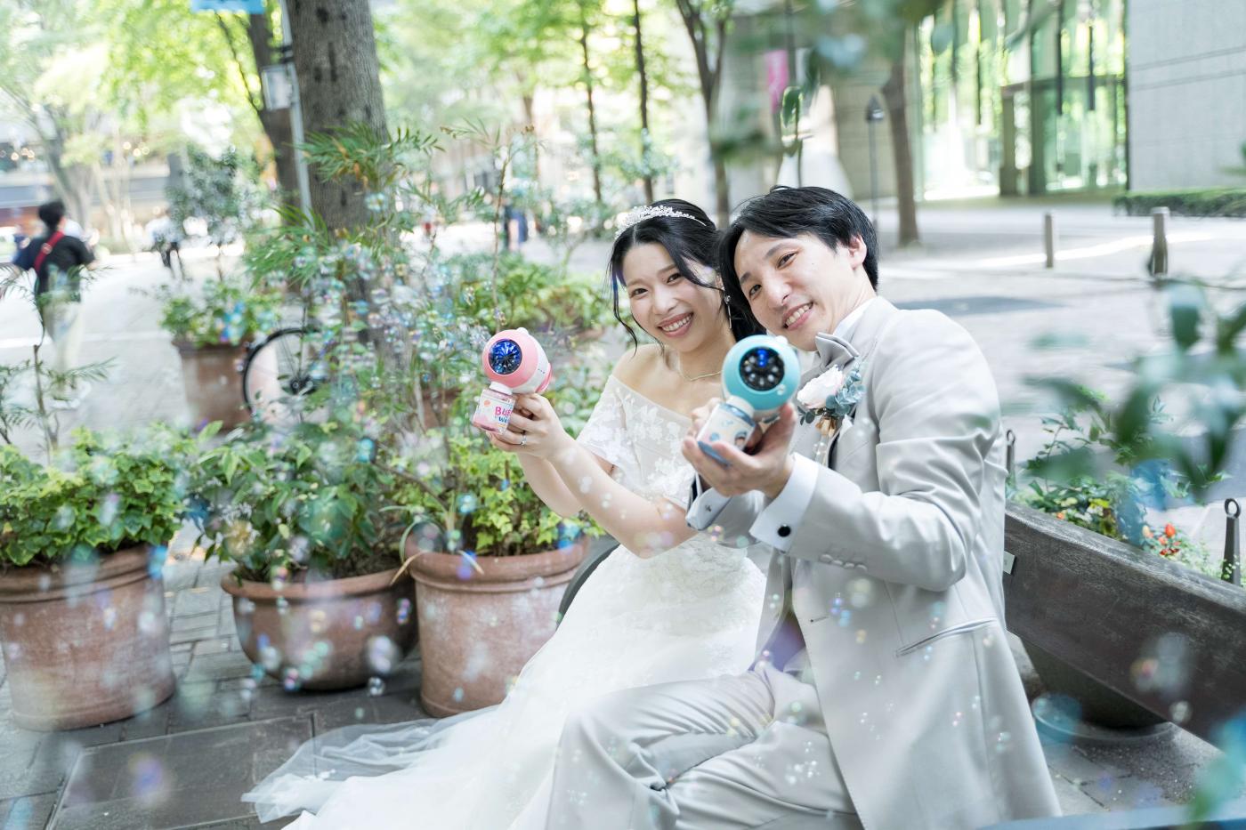 仲良しで、笑顔が素敵なおふたりだからこそ、おふたりらしいポーズで写真もたくさん残し、記憶と記録に残る1日に♪