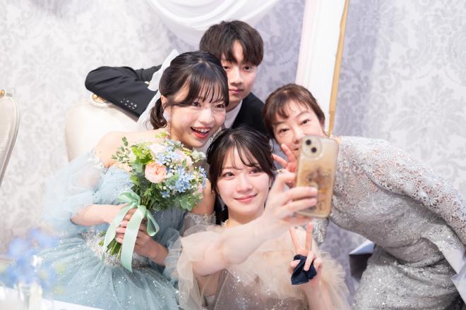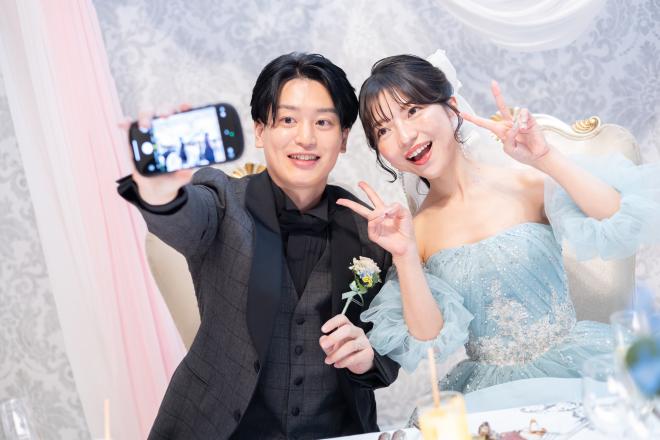 披露宴ではゲストの皆様と沢山お写真を撮られ、笑顔が素敵なお写真がおさめられました