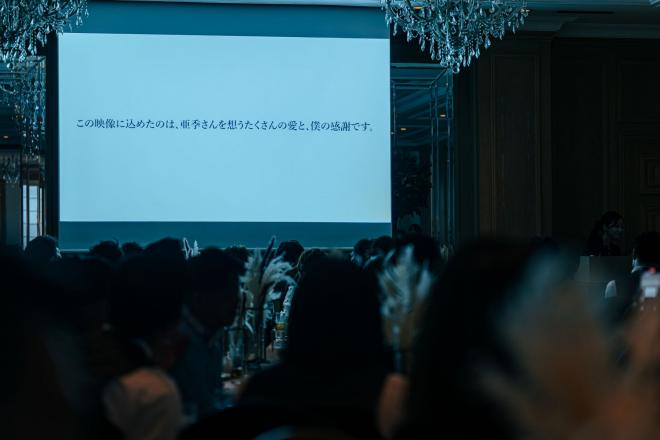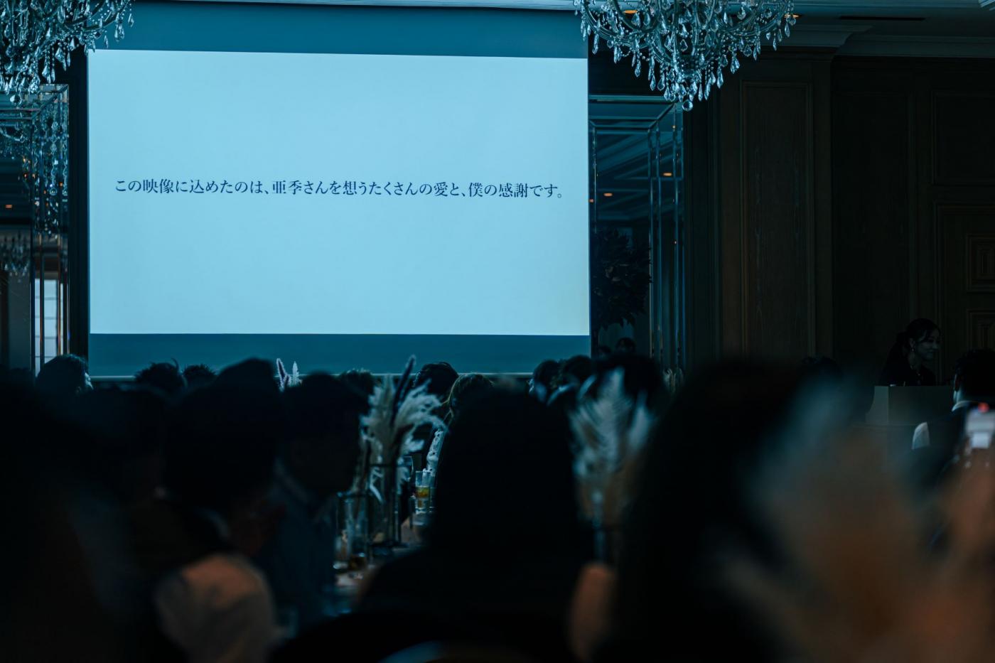 クライマックスにはご新郎様からご新婦様へサプライズムービーと共に