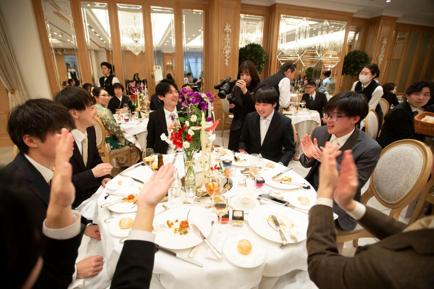 「おめでとう」の声やあちらこちらで生まれる再会のハグなどが