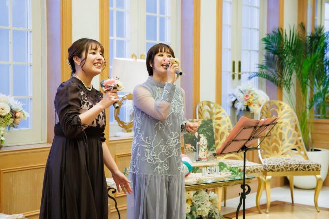 披露宴では、ゲストも一緒に楽しめる演出が印象的。