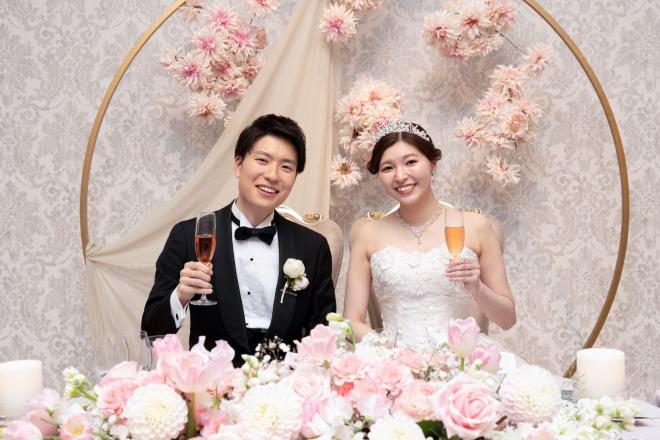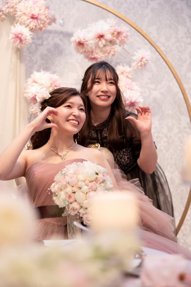 ピンクを基調にコーディネートされた装花やテーブル装飾が空間を彩り、会場全体がときめきに満ちた夢のような雰囲気に包まれました。