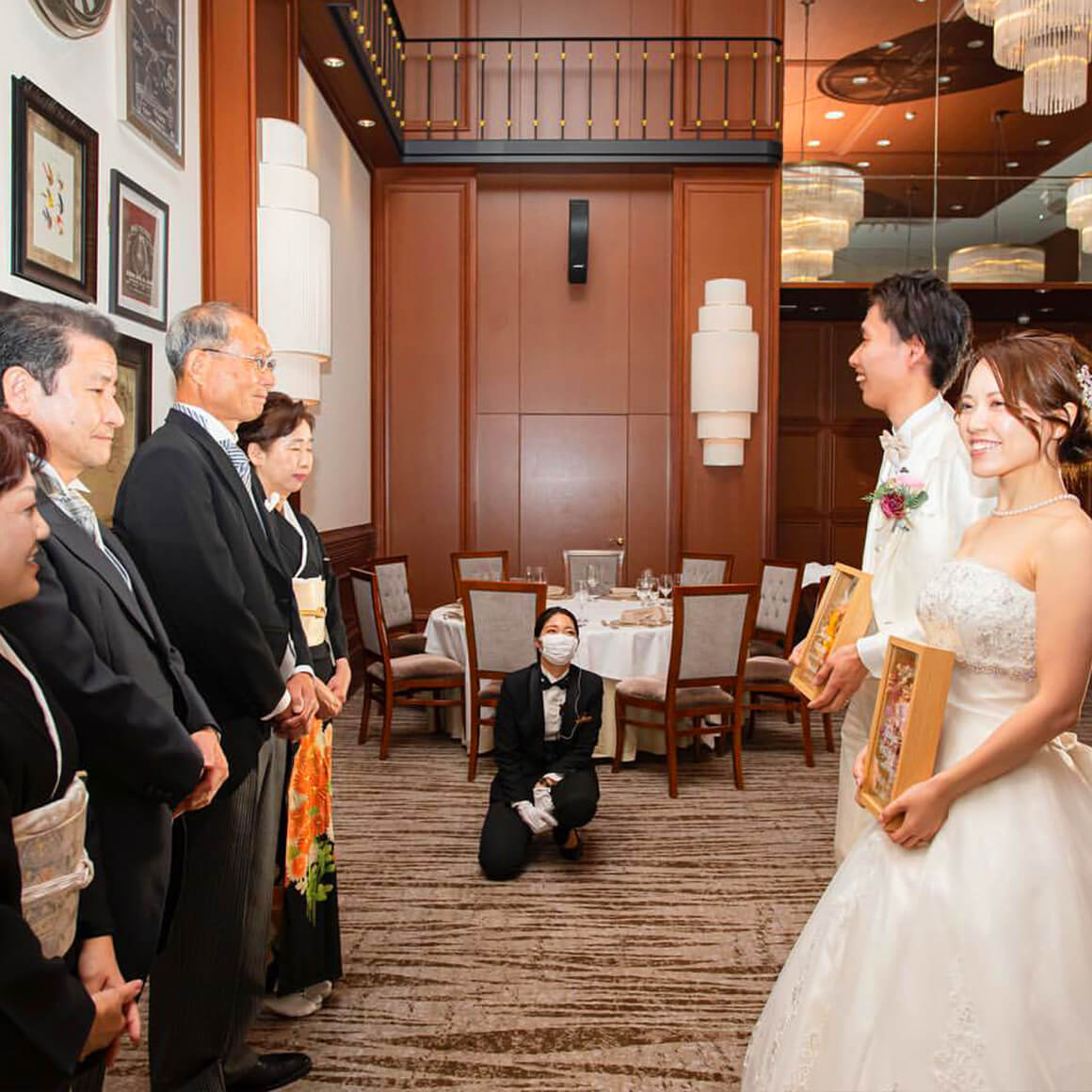挙式終盤に、家族の元へ行き、直接お話することができます♪