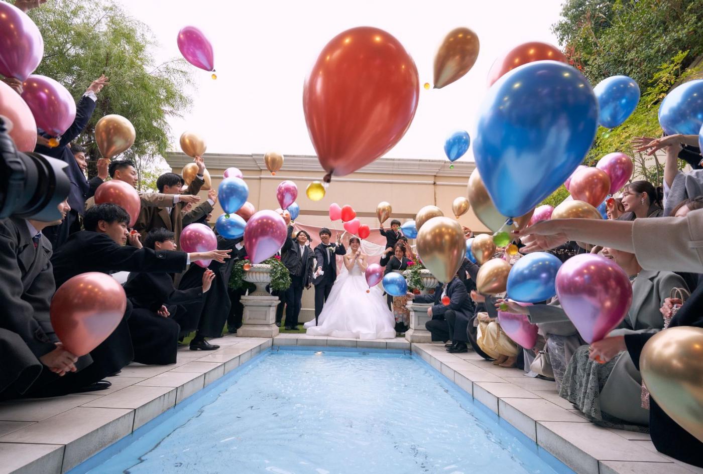 カウントダウンに合わせてゲスト様全員でバルーンをプールに投げ入れると、