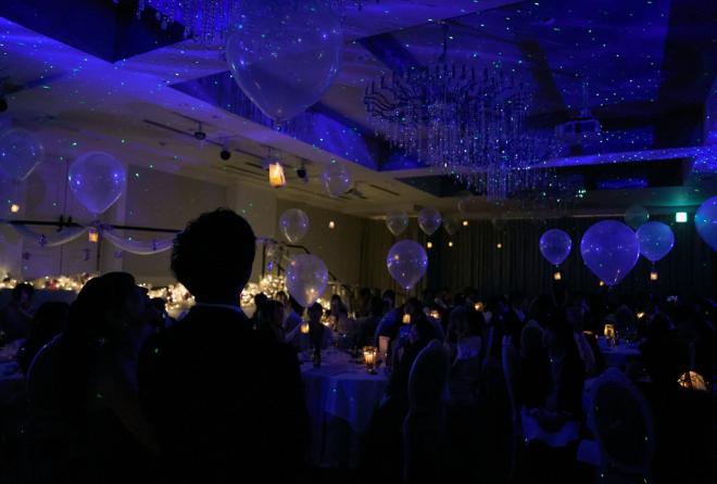 披露宴後半では、披露宴会場内でリリースするランタン演出を。