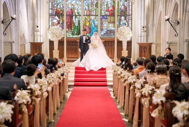 ブライダルフェアで150年前のステンドグラスの圧倒的スケールと大聖堂の神聖さ、