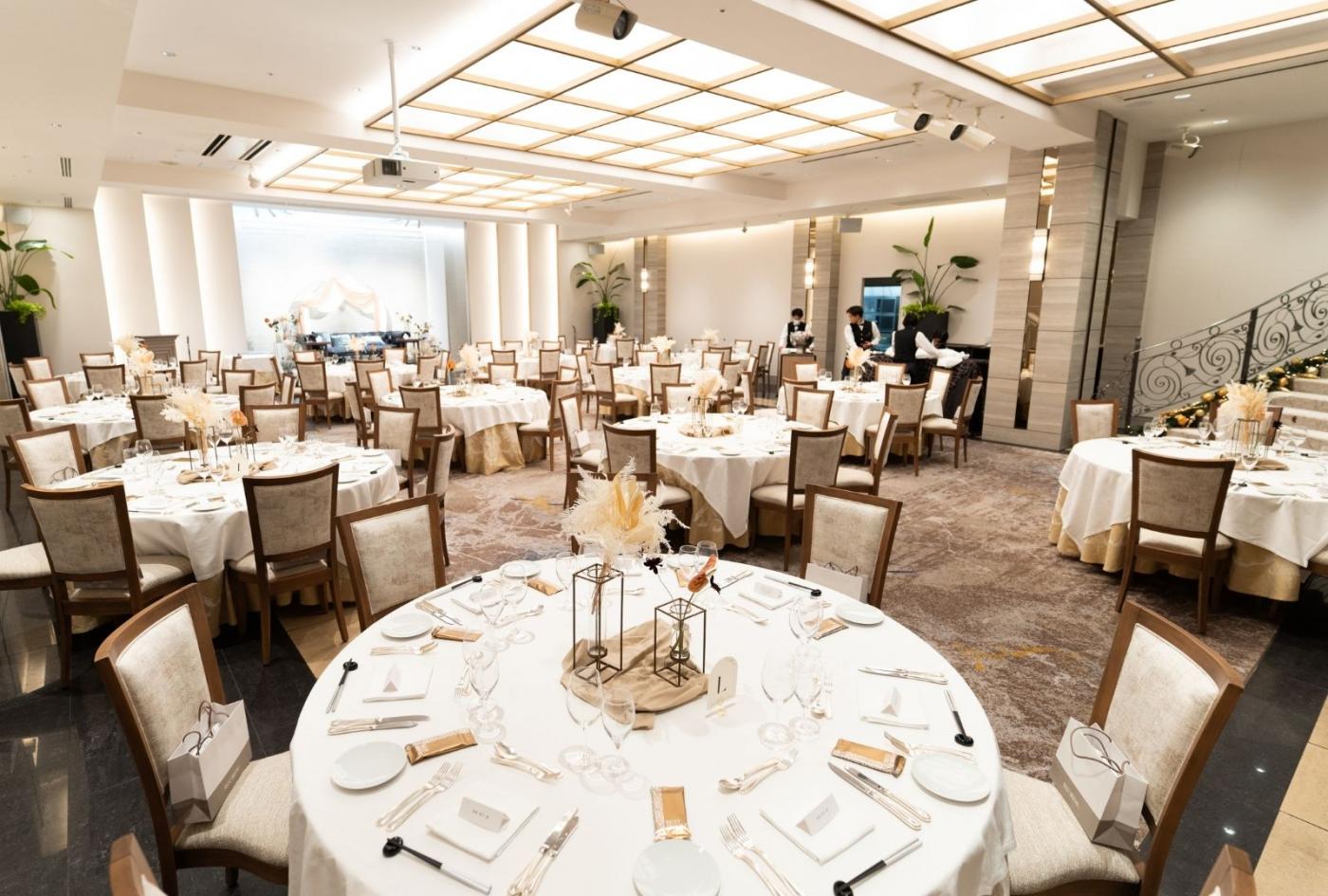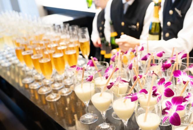立食形式でスタートする披露宴で、海外の立食パーティのような開放的な空間を演出。