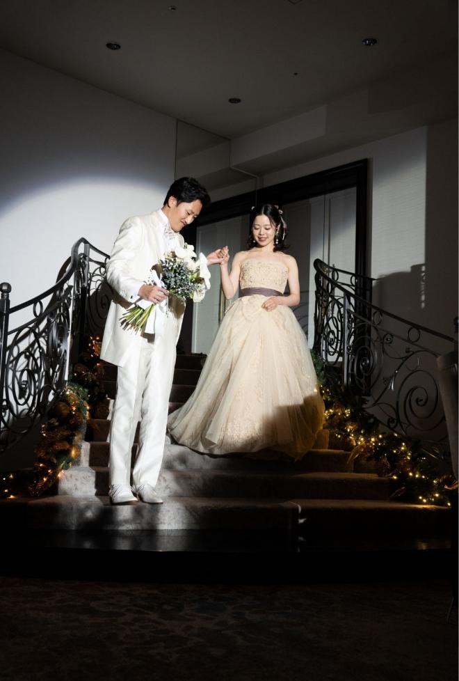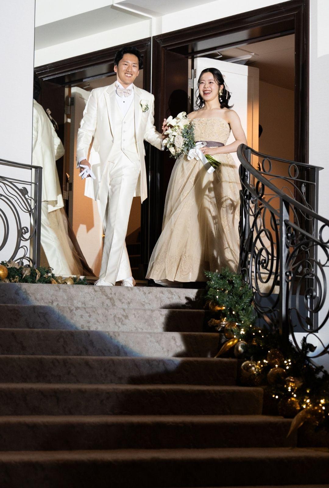 エスコートを受けながらゆっくりと降りてくる階段入場。