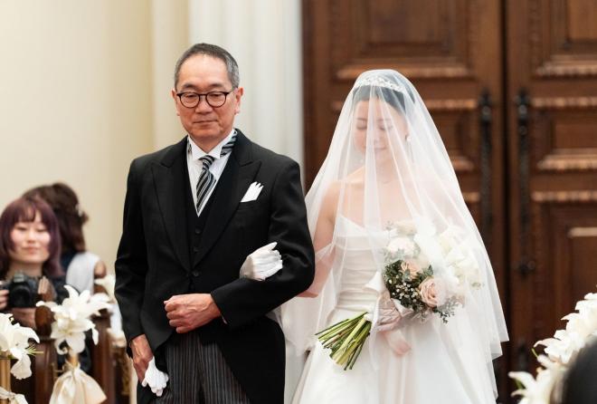 ゲストの視線を独占する圧倒的な主役感と、邸宅ウエディングならではの華やかさを存分に活かしました。